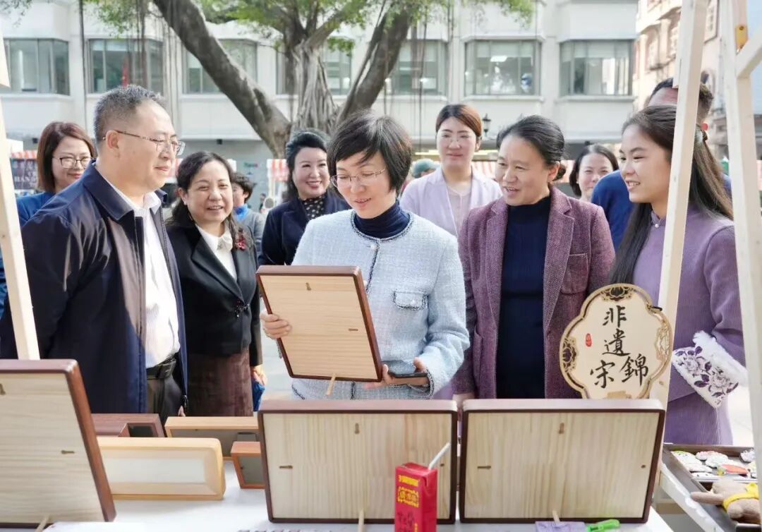 调研组还前往羊城“她”益品乡村振兴非遗文化馆(沙面馆),调研巾帼优品助力“百千万工程”情况。谭萍详细了解了平台建设、产品推广、公益集市举办及女性创业带动等情况,与女企业家们亲切交谈,认真听取她们的想法,鼓励她们持续发挥“半边天”作用,要求各级妇联组织创新服务形式,为广大女性搭建更多创业就业平台,在服务乡村振兴、促进妇女发展中发挥更大作用。