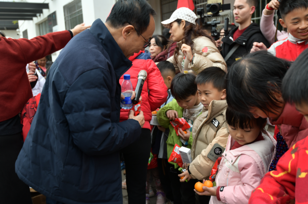活动尾声,兔爸与丰阳镇党委副书记、镇长陈先红还化身财神,派发“福”字门贴、饼干、糖果等新年礼物,送上节日祝福,现场热闹非凡,大家脸上都洋溢着幸福的笑容,共同欢度了一个温暖而有意义的元旦。